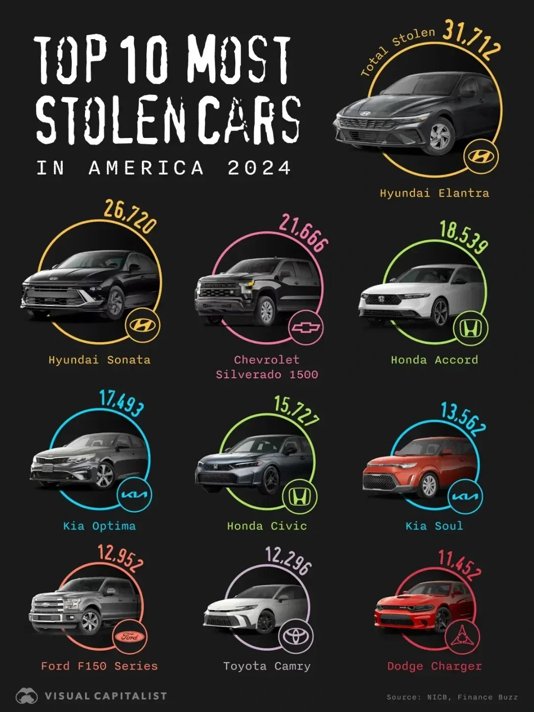 - Visual Capitalist - Top 10 Most Stolen Cars in America 2024