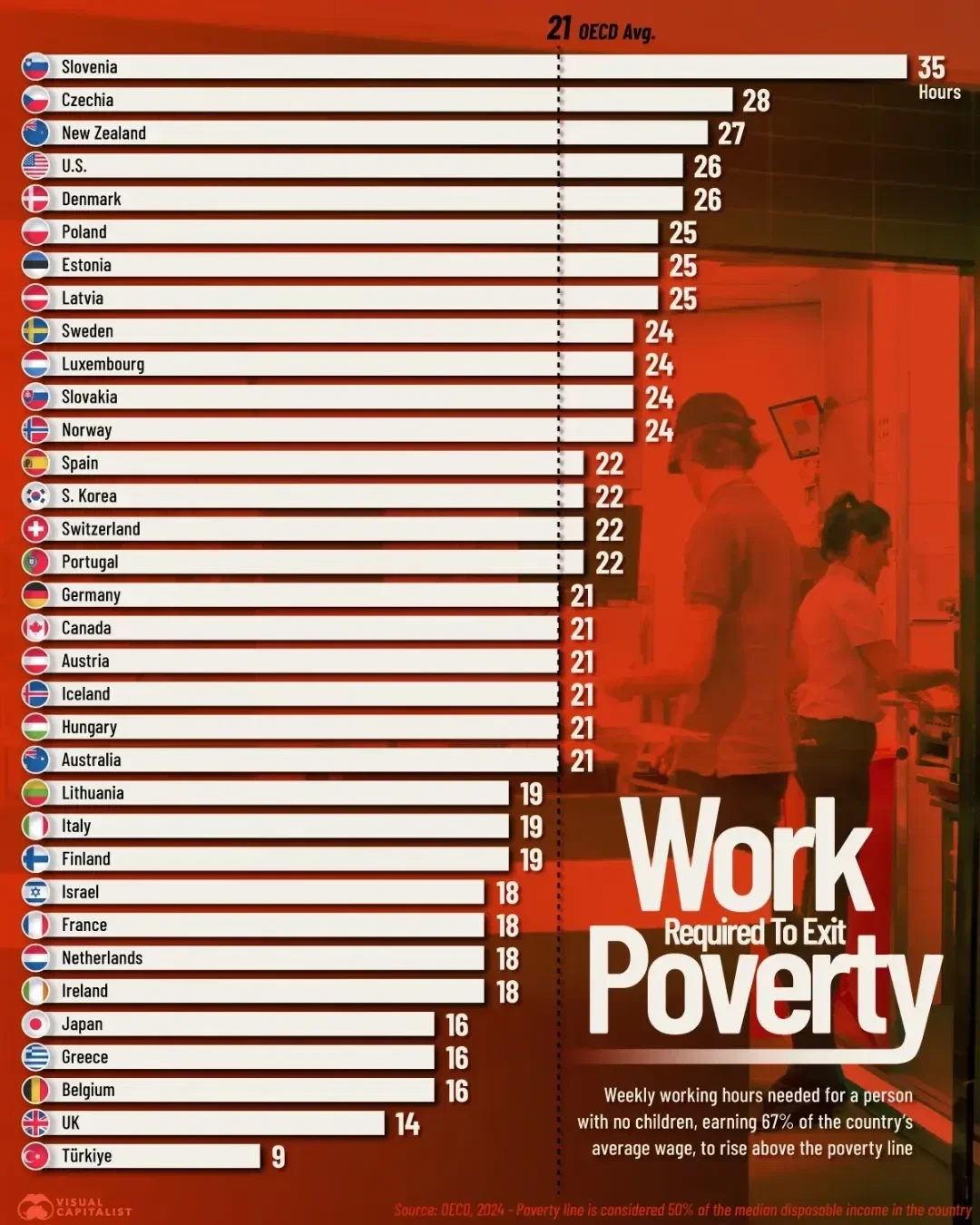 - Visual Capitalist (Data visualization based on OECD 2024 data - Poverty line = 50% of median disposable income, with income at 67% of national average wage)