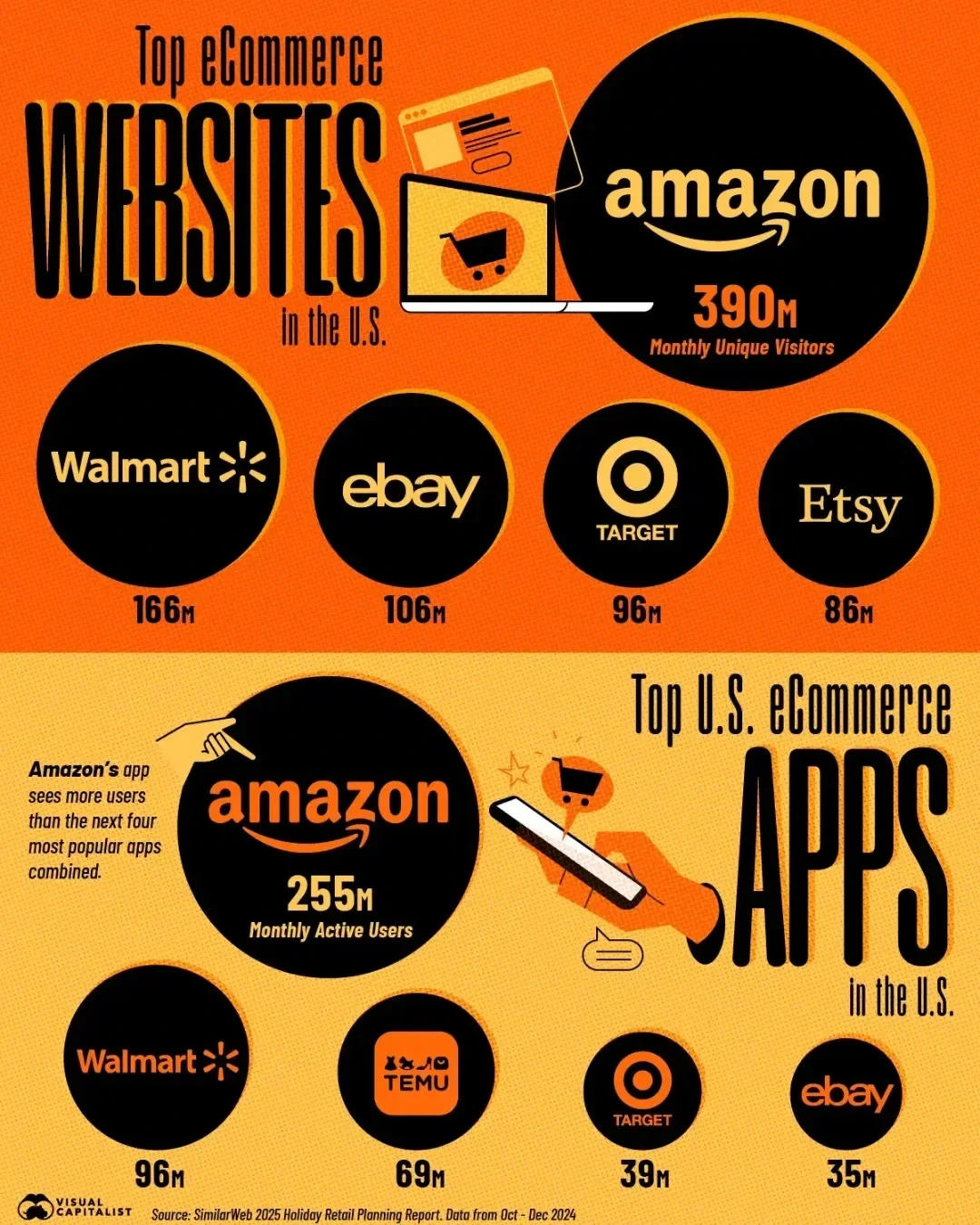 Visual Capitalist, Source: SimilarWeb 2025 Holiday Retail Planning Report, Data from Oct - Dec 2024