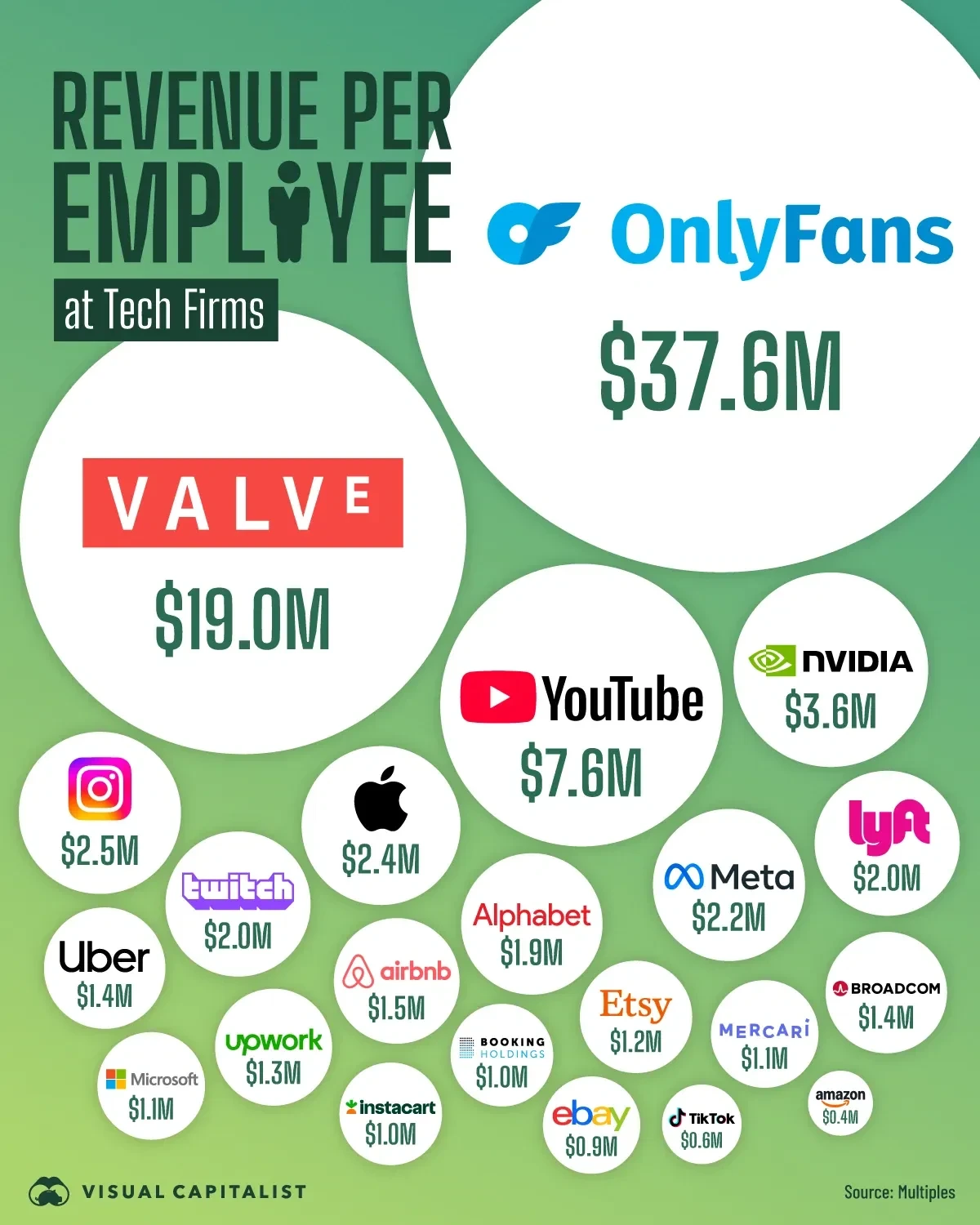 - Visual Capitalist: REVENUE PER EMPLOYEE at Tech Firms (제공된 이미지)