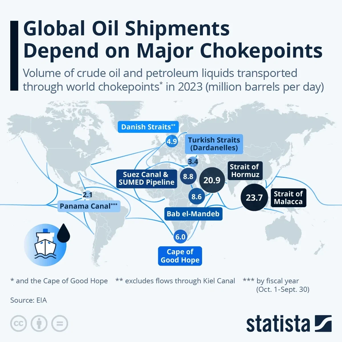 - Statista: Global Oil Shipments Depend on Major Chokepoints (제공된 이미지)